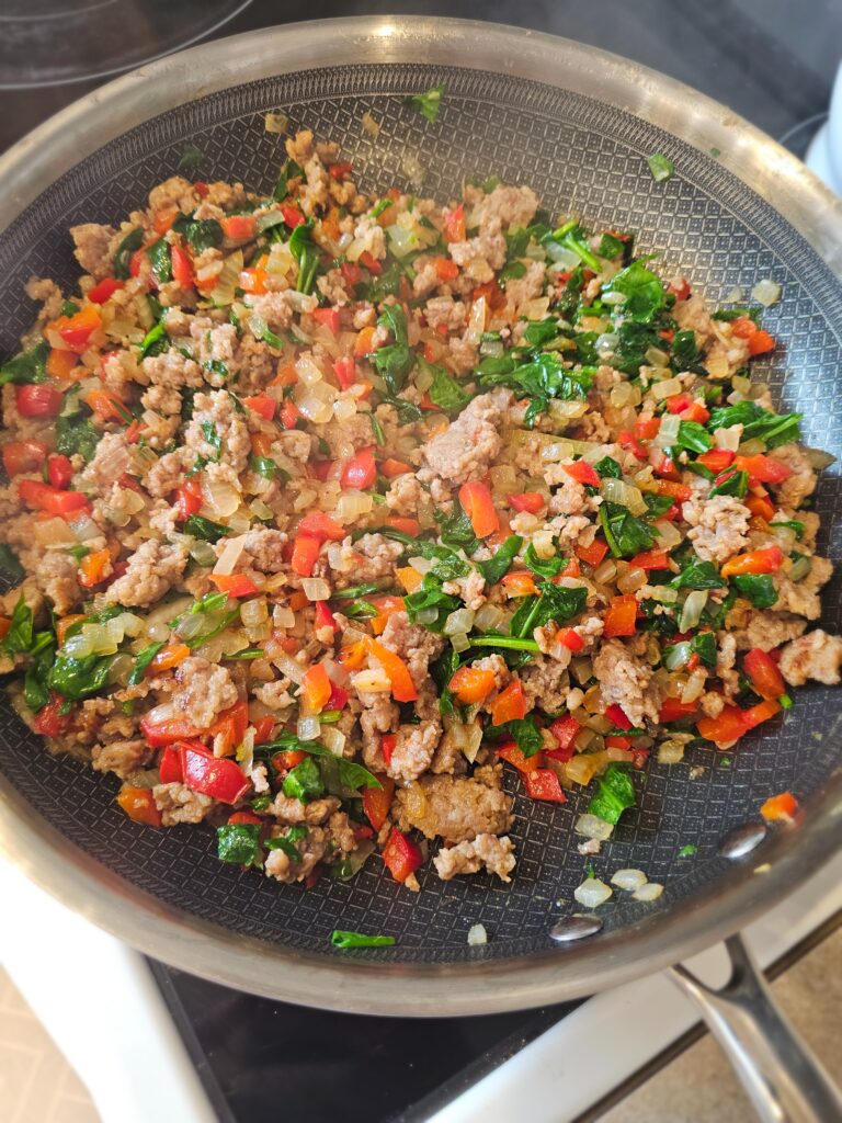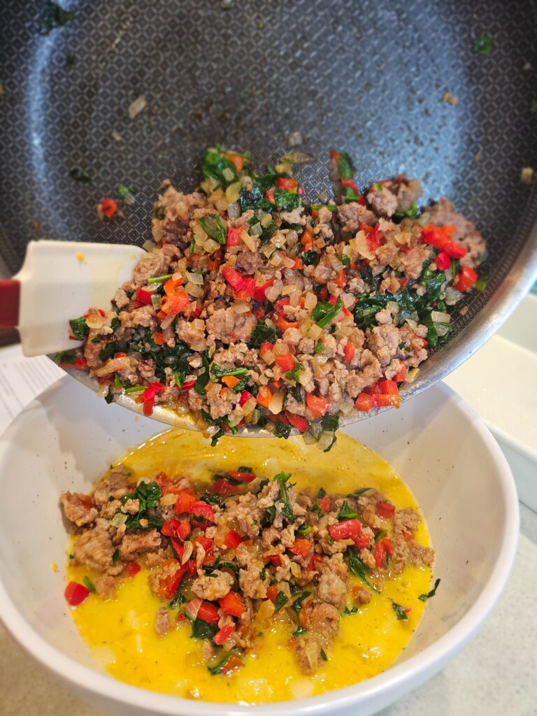 Savory Sausage: Seasoned sausage adds richness and depth with the eggs and veggies. You can easily swap the sausage for any protein to your liking too.