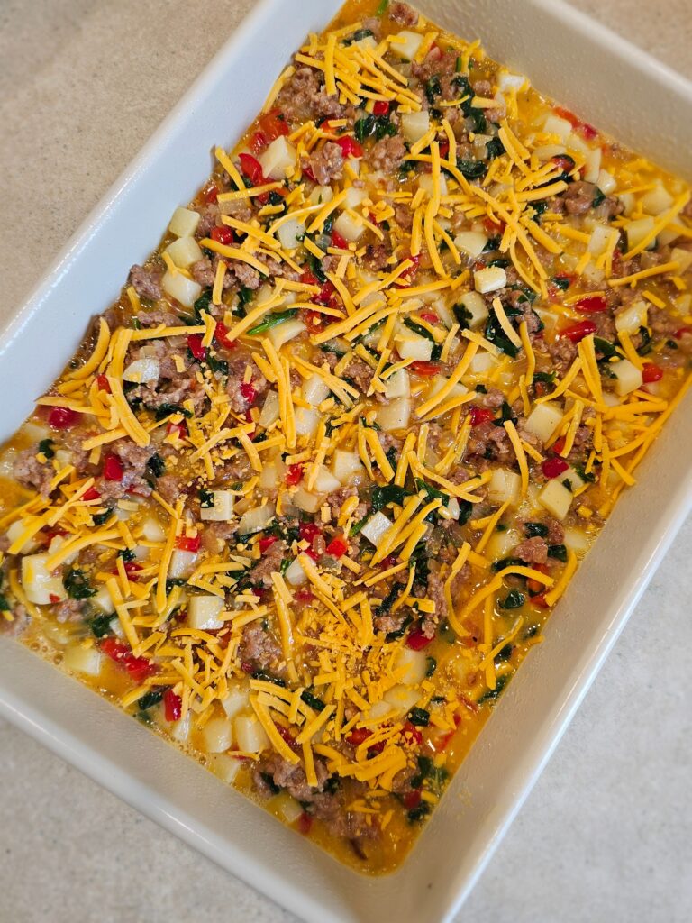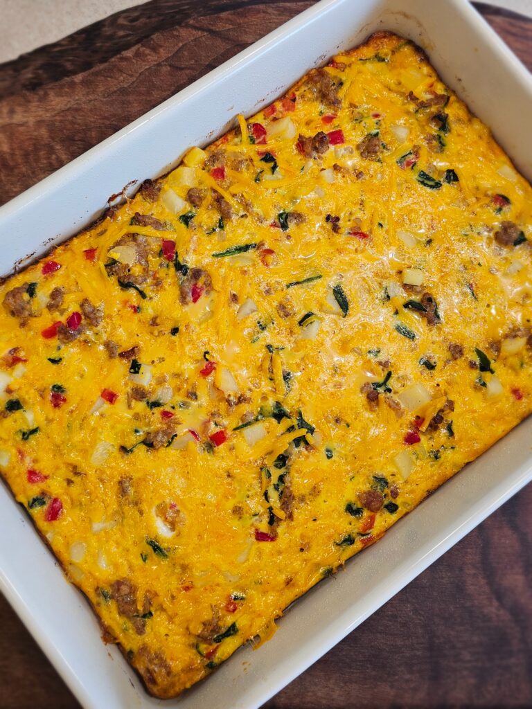 It’s perfect for busy school mornings, meal prep, weekend brunch, and even Christmas morning. This casserole can be baked right away or prepped the night before for an easy, flavorful morning. As always, it can easily be made dairy-free too!